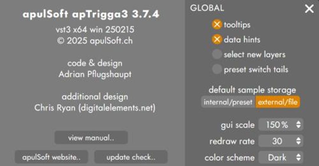 Apulsoft apTrigga3 3.7.4 supports major plugin formats and integrates smoothly with most modern DAWs.