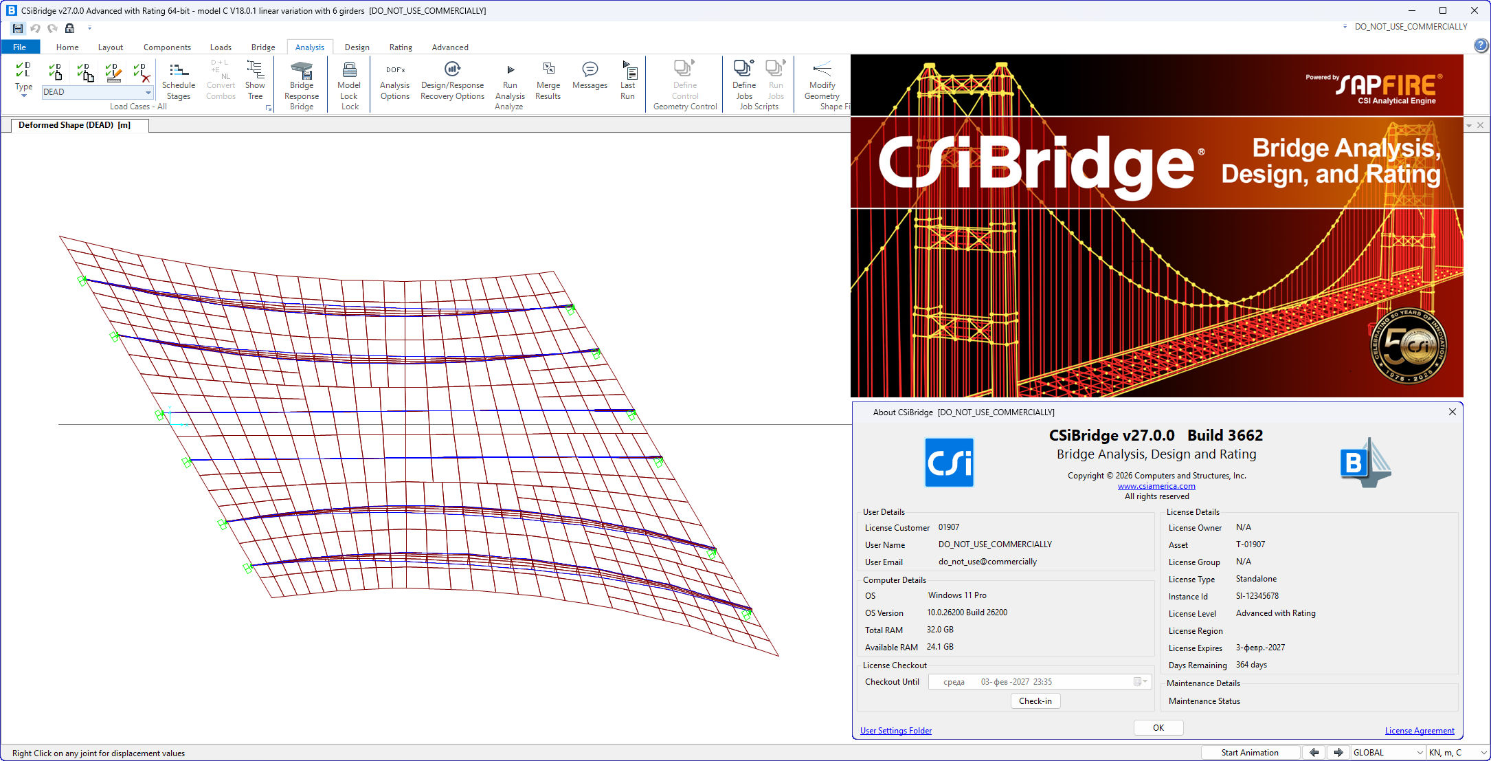 Description of CSI Bridge Advanced with Rating 27.0.0