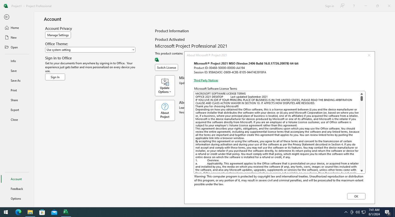 Working with MS project 2021 full license