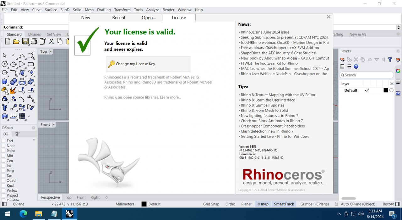 Working with Rhinoceros 8.8.24163.12481 full license