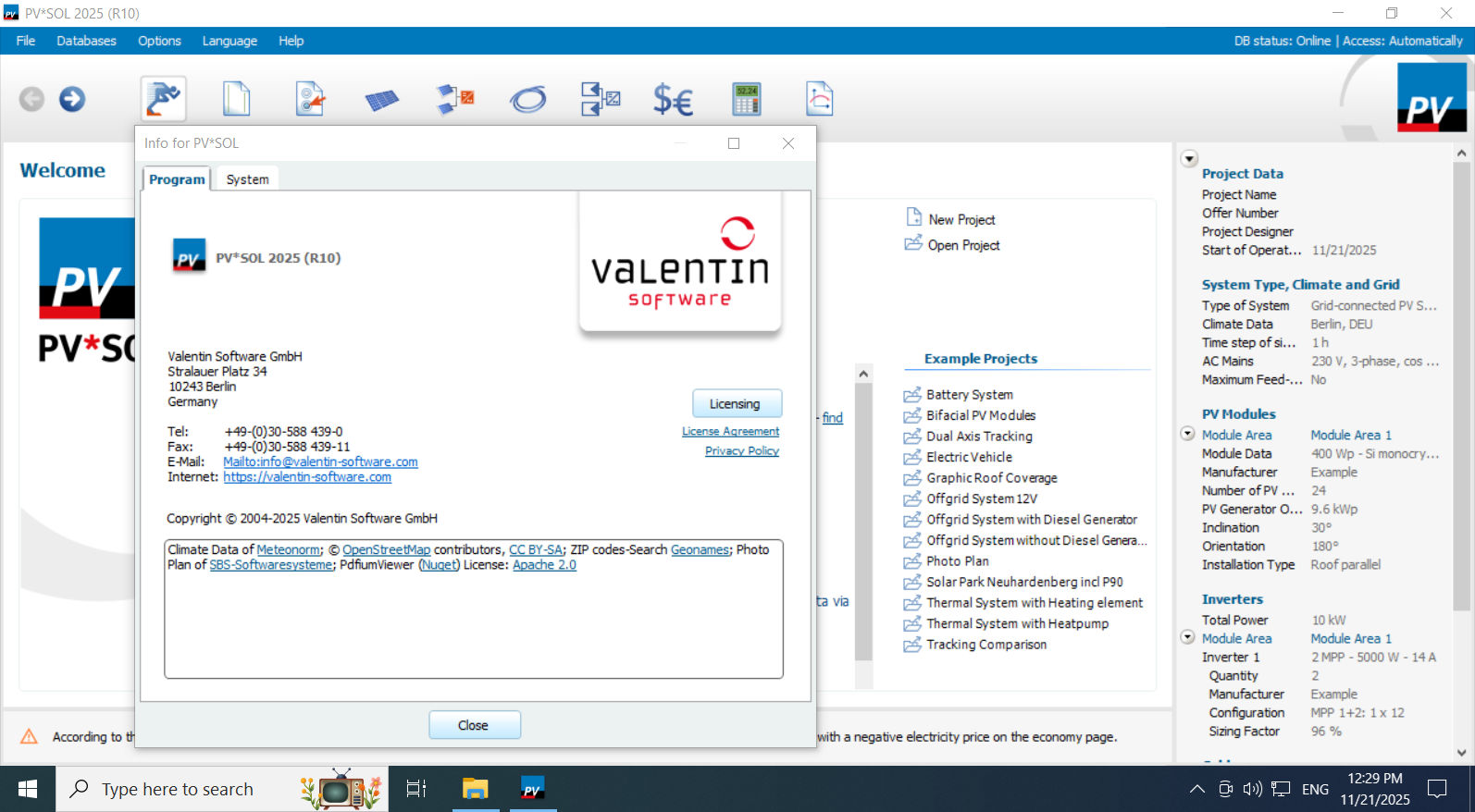 Description of Valentin Software PVSOL 2025 R10